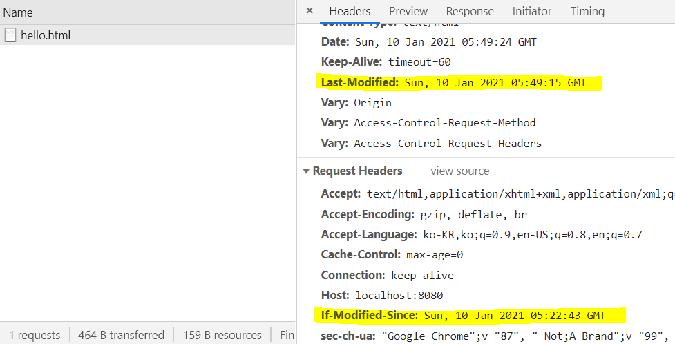 ์ด๊ฒ์ ์๋ต์ด 200์ผ ๋์ If-Modified-Since์ Last-Modified ํค๋์ด๋ค.