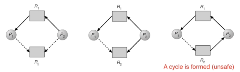 ์์คํ ์ด unsafe state์ ์์ผ๋ฉด → possibility of deadlock
