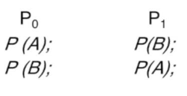 - ์์คํ ์ 2๊ฐ์ tape drive๊ฐ ์๋๋ฐ, ํ๋ก์ธ์ค P1๊ณผ P2 ๊ฐ๊ฐ์ด ํ๋์ tape drive๋ฅผ ๋ณด์ ํ ์ฑ ๋ค๋ฅธ ํ๋๋ฅผ ๊ธฐ๋ค๋ฆฌ๊ณ ์๋ค