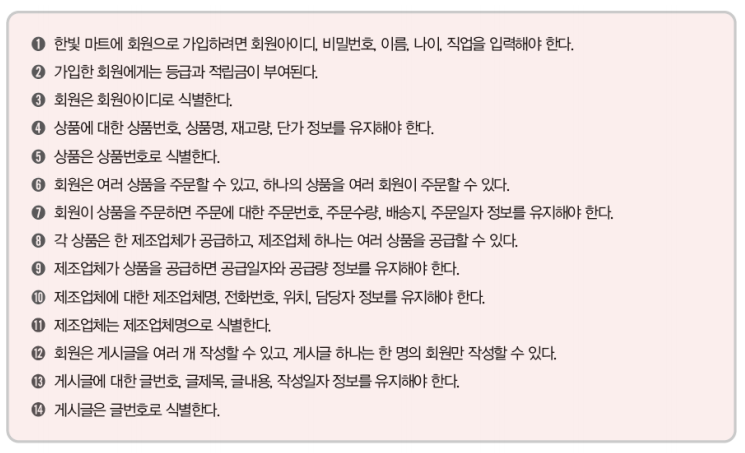 ์์: ์ธํฐ๋ท์ผ๋ก ํ์๋ค์๊ฒ ์ํ์ ํ๋งคํ๋ ํ๋น ๋งํธ์ ๋ฐ์ดํฐ๋ฒ ์ด์ค ๊ฐ๋ฐ
