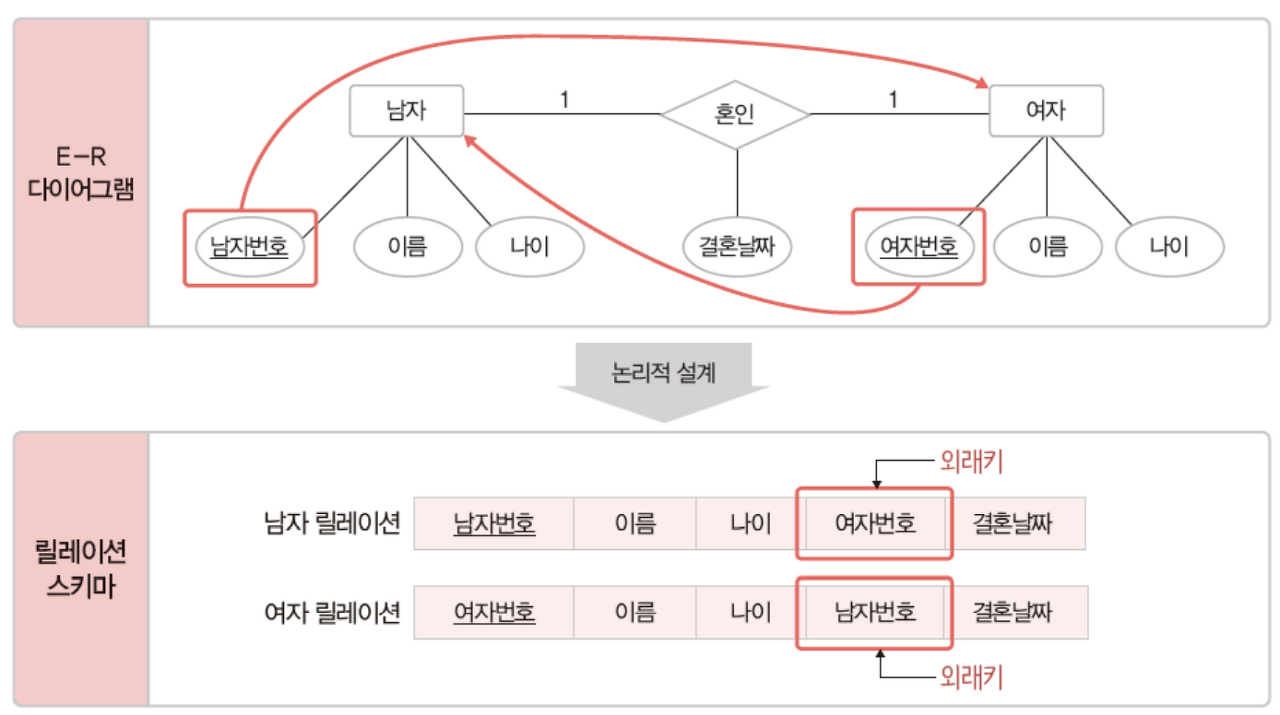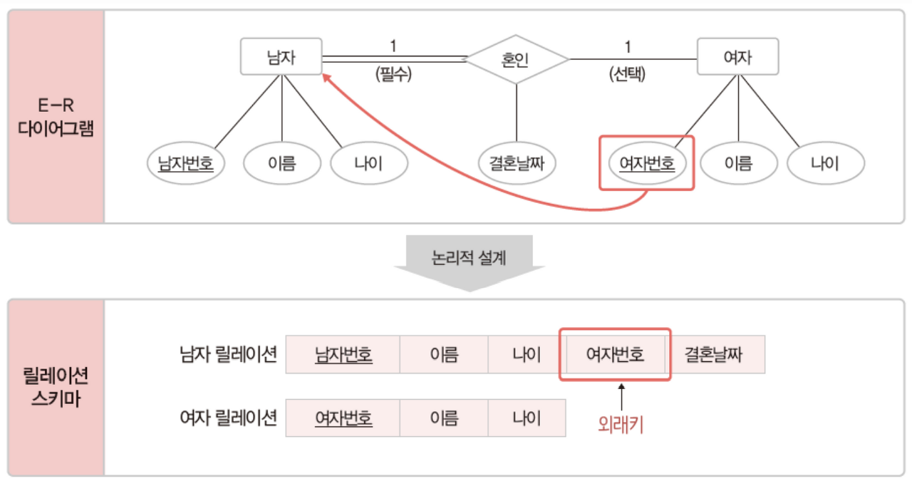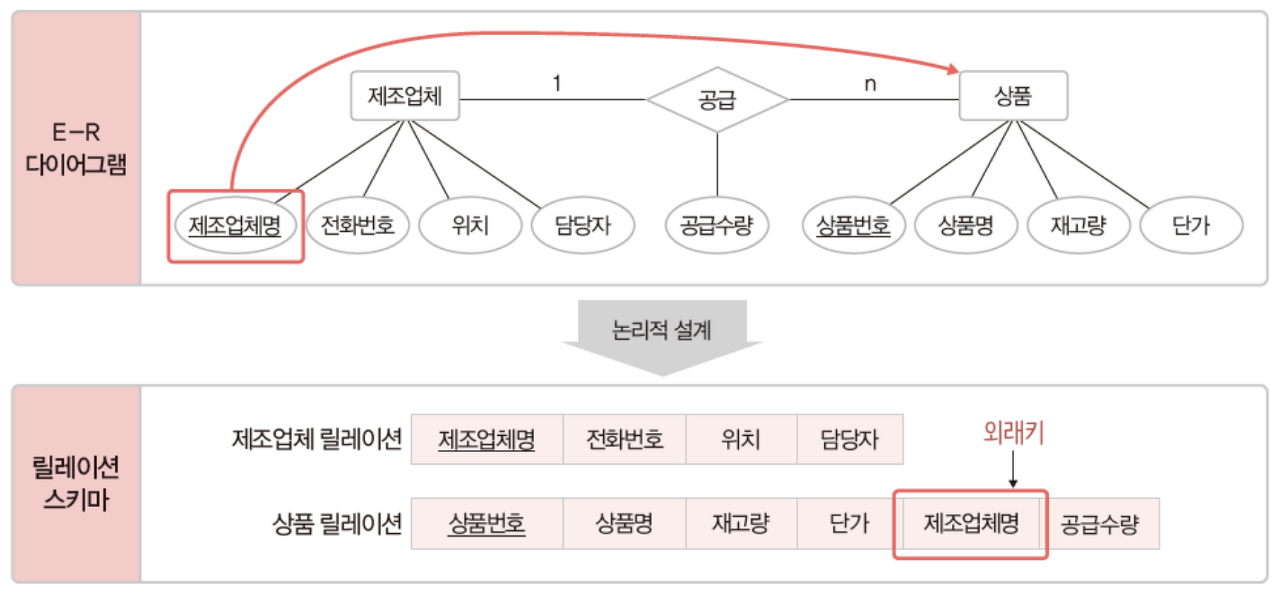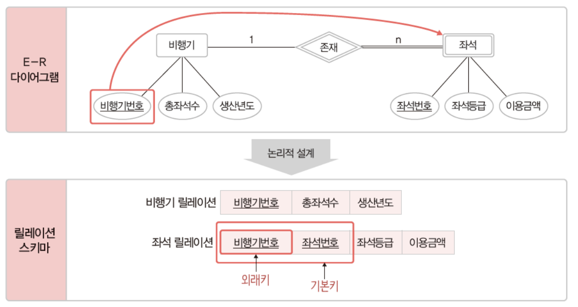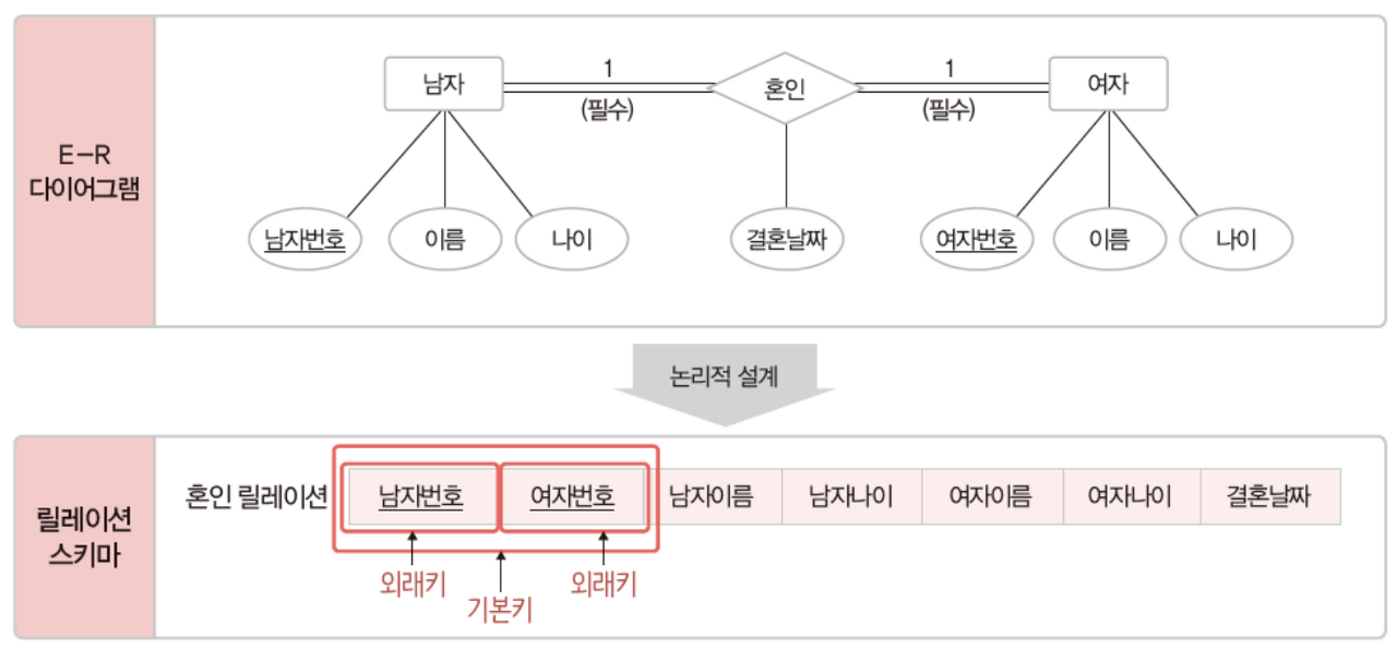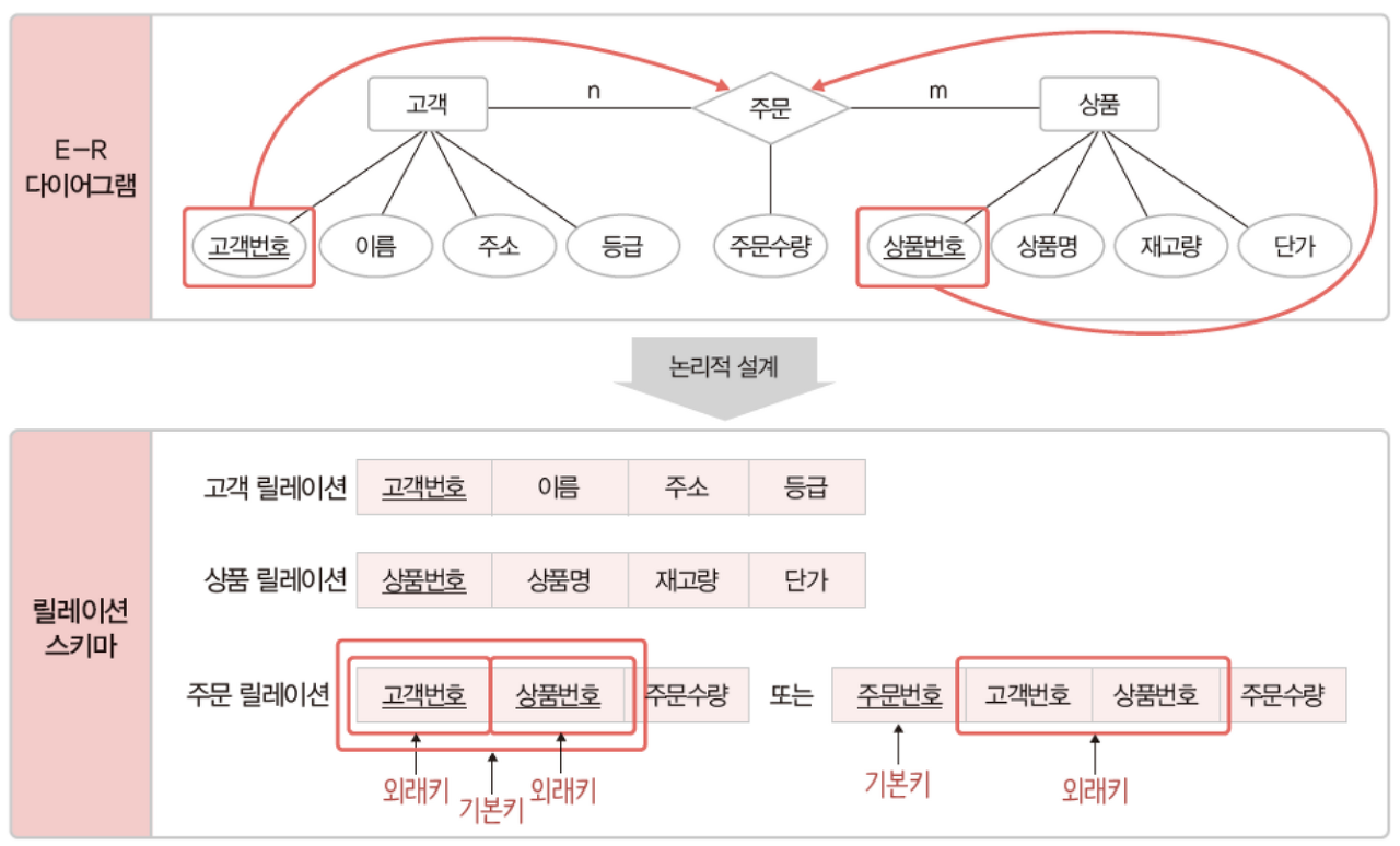 - ๊ฐ๋ ์ ์ค๊ณ ๋จ๊ณ์ ๊ฒฐ๊ณผ๋ฌผ์ธ E-R ๋ค์ด์ด๊ทธ๋จ์ ๋ฆด๋ ์ด์ ์คํค๋ง๋ก ๋ณํ