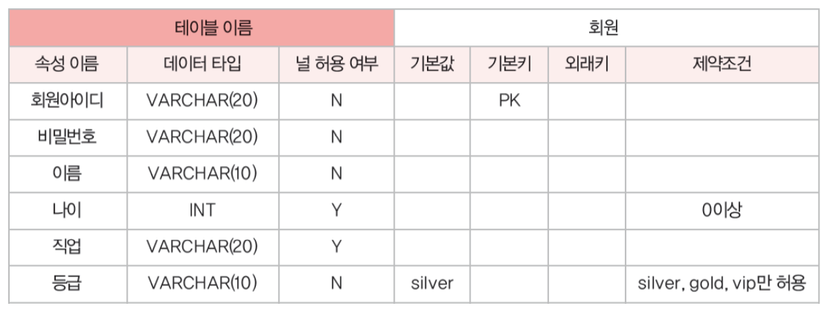 - ๋ฆด๋ ์ด์ ์คํค๋ง๋ก ๋ณํ ํ ์์ฑ์ ๋ฐ์ดํฐ ํ์ , ๊ธธ์ด, ๋ ๊ฐ ํ์ฉ ์ฌ๋ถ, ๊ธฐ๋ณธ ๊ฐ, ์ ์ฝ์กฐ๊ฑด ๋ฑ์ ์ธ๋ถ์ ์ผ๋ก ๊ฒฐ์ ํ๊ณ ๊ฒฐ๊ณผ๋ฅผ ๋ฌธ์ํ์ํด