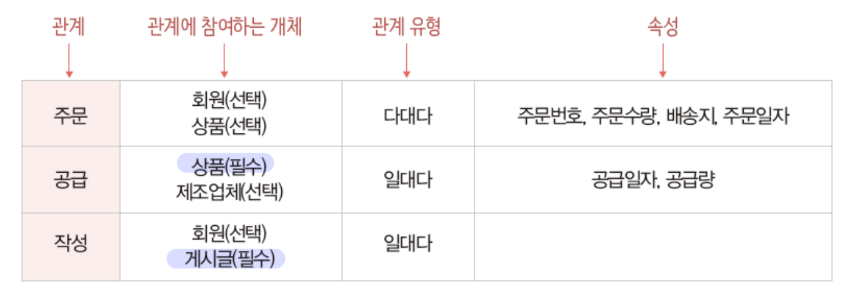 - “์ํ” ๊ฐ์ฒด๋ ๊ด๊ณ์ ํ์์ ์ผ๋ก ์ฐธ์ฌ / “์ ์กฐ์ ์ฒด” ๊ฐ์ฒด๋ ๊ด๊ณ์ ์ ํ์ ์ผ๋ก ์ฐธ์ฌ