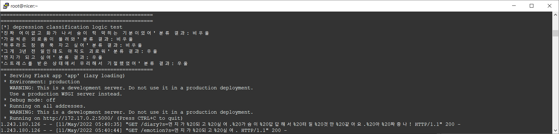 ์ฒ์์๋ ํ๋ฒ์ ๊ธฐ์จ/ํฌ๋ง/์ค๋ฆฝ/์ฌํ/๋ถ๋ ธ/๋ถ์/ํผ๊ณค/ํํ 8๊ฐ์ง ๊ฐ์ ์ ๋ถ๋ฅํด๋ผ ์ ์๋ ๋ชจ๋ธ์ ์ ์ํ์ต๋๋ค. ํ ๋ฌ ๋์ ๊ฑฐ์ ๋งค์ผ ๋ฐค๋ง๋ค ์จ๋ผ์ธ ํ์๋ก ๋ชจ์ฌ ์ง์ ๋ง ๊ฐ์ ๋ฌธ์ฅ์ ๊ฐ์ ์ผ๋ก ๋ถ๋ฅํ๋ ์์ ์ ํ์ต๋๋ค. ํ์ง๋ง ํด๋น ๋ชจ๋ธ์ ์ ํ๋๊ฐ 80%์ ๊ทธ์ณค์ต๋๋ค. ํ๋ฆด ํ๋ฅ ์ด 20% ์ ๋๋ ๋๋ ๋ชจ๋ธ์ ์ฌ์ฉํ ์๋ ์์์ต๋๋ค.