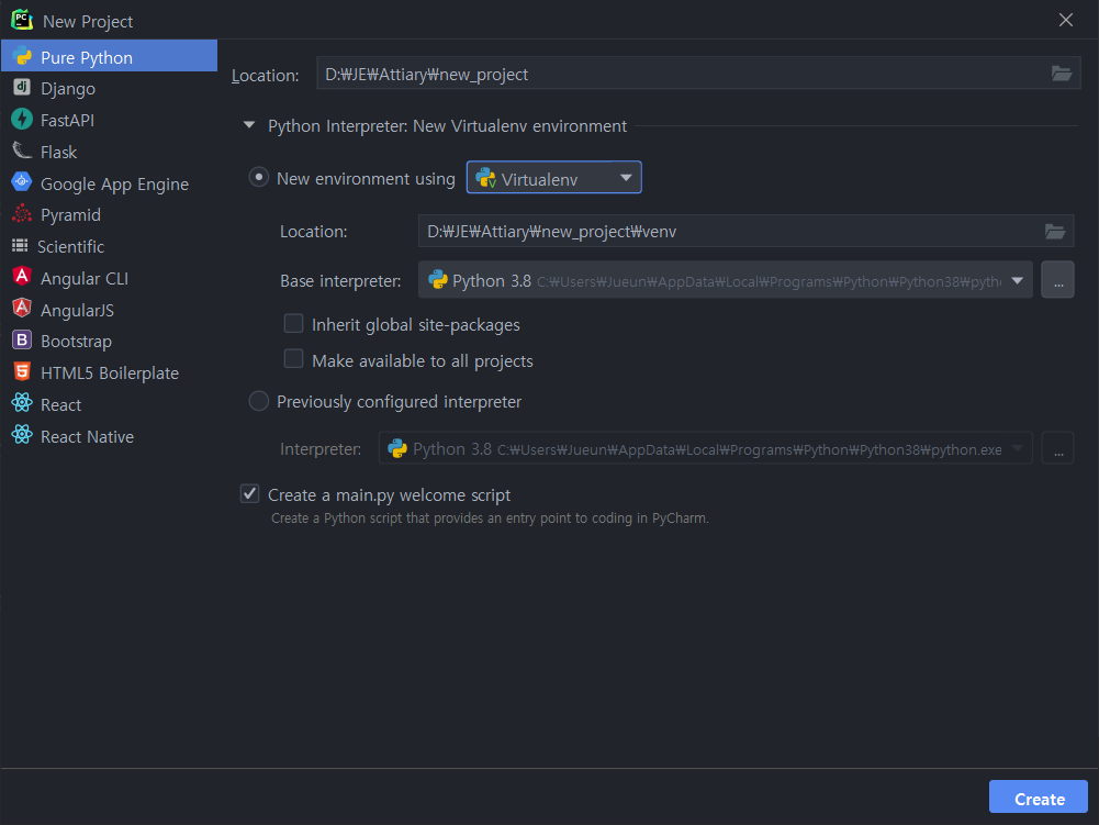 ์ ๋ python ๋ฒ์ ์ด 3.8.10 ์ ๋๋ค.
