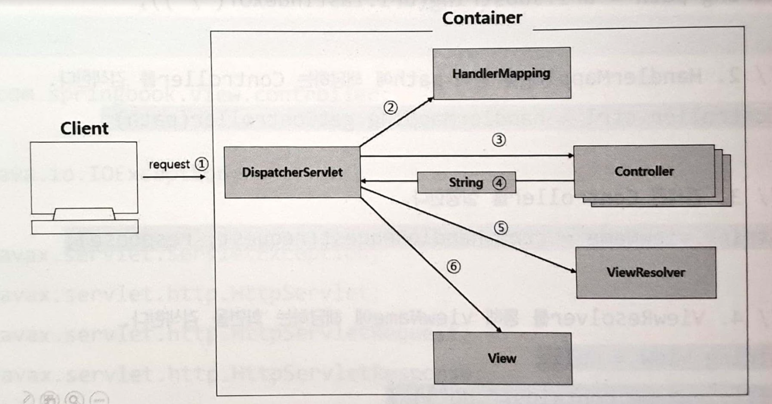 클라이언트의 요청을 받은 DispatcherServlet은 HandlerMapping을 통해 Controller 객체를 검색하여 실행한다.